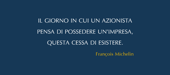 In questa prospettiva François Michelin ha detto: il giorno in cui un azionista pensa di possedere un'impresa, questa cessa di esistere.